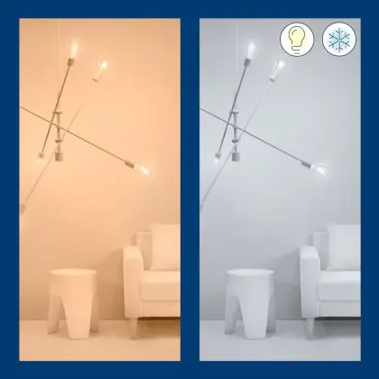 Die E27 LED-Lampe von WiZ hat 2200K - 5000K Tunable White als Farbtemperatur. Als Faustregel gilt: Je niedriger der Kelvinwert, desto gemütlicher wirkt das Licht.