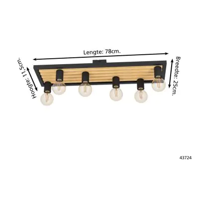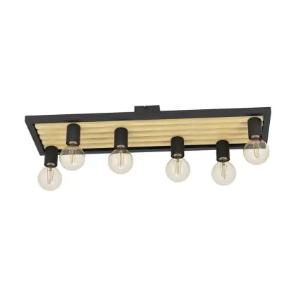 Beschreibung Eglo Deckenleuchte Consett Stahl Holz Schwarz Braun | IP20 - Geeignet für 6x E27