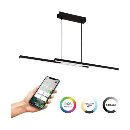 Beschreibung Eglo Pendelleuchte Fraioli-Z Aluminium Schwarz 17W 2400lm - 827-865 Abstimmbares Weiß + RGB | IP20 - Zigbee Dimmbar