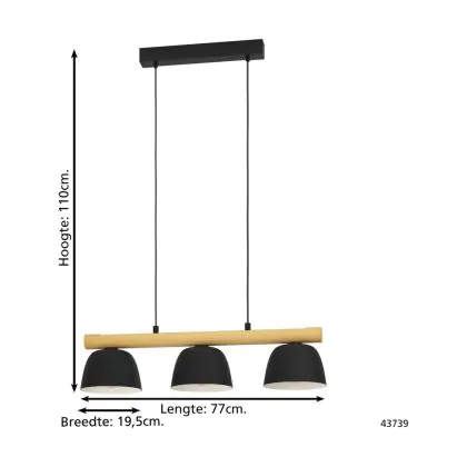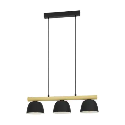 Beschreibung Eglo Pendelleuchte Sherburn Stahl Holz Schwarz Braun | IP20 - Geeignet für 3x E27