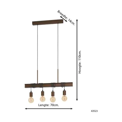 Beschreibung Eglo Pendelleuchte Townshend 4 Stahl Braun | IP20 - Geeignet für 4x E27