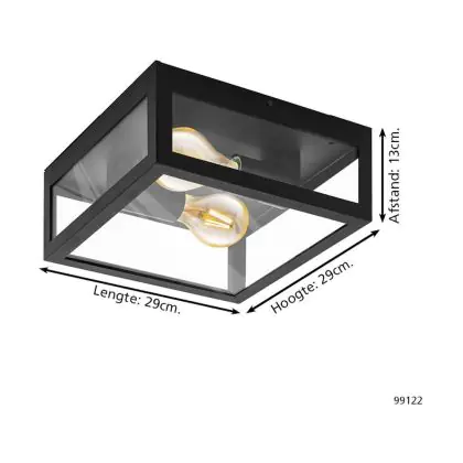 Beschreibung Eglo Wand und Deckenleuchte Amezola Stahl Schwarz | IP44 - Geeignet für 2x E27