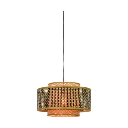 Good&Mojo Pendelleuchte Bhutan Bambus Schwarz L | Geeignet für 1x E27