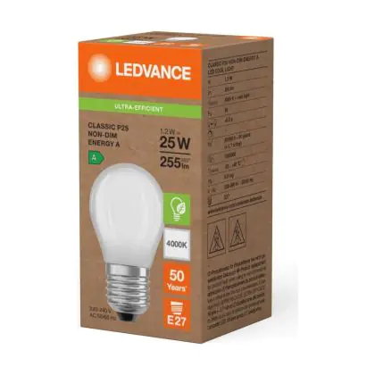 | Herstellername | LED CLASSIC P ENERGY EFFICIENCY A S 1.2W 840 Frosted E14 | |