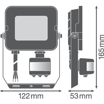 Beschreibung Ledvance LED-Scheinwerfer Kompakt Schwarz 20W 1800lm 100D - 830 Warmweiß | IP65 - Symmetrisch - Bewegungs- und Lichtsensor