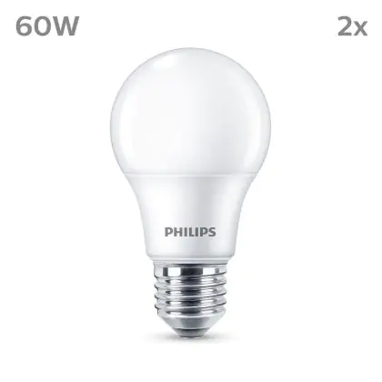 Die Mehrfachpackung 2x Philips Glühbirne LED E27 Birne Matt 8W 806lm - 827 Extra Warmweiß ist eine effiziente E27 LED-Lampe und der perfekte Ersatz für Ihre konventionellen W Lampen mit E27-Sockel. Zudem strahlt sie Licht in der Farbtemperatur 2700K - Extra Warmweiß aus und punktet durch eine lange Lebensdauer.