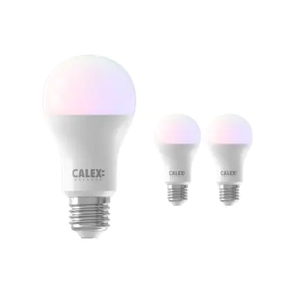 Beschreibung Mehrfachpackung 3x Calex Smart Tuya Wifi E27 Birne 8.5W 806lm - 822-840 Abstimmbares Weiß | RGBW - Dimmbar - Ersatz für 60W