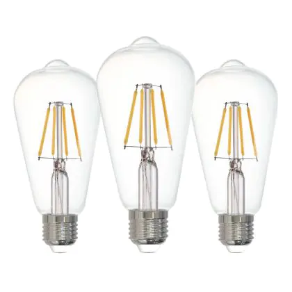 Die Mehrfachpackung 3x Eglo LED Edison E27 Fadenlampe Klar 12W 470lm - 827 Extra Warmweiß | Ersatz Für 40W ist eine effiziente E27 LED-Lampe mit Retrodesign und der perfekte Ersatz für Ihre konventionellen 40W Lampen mit E27. Zudem strahlt sie Licht in der Farbtemperatur 2700K - Extra Warmweiß aus und punktet durch eine lange Lebensdauer.
