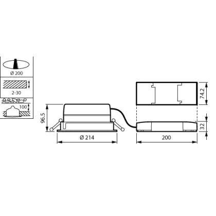 Beschreibung Philips LED Downlight LuxSpace Kompakt geringe Höhe DN570B VLC-E 20.9W 2600lm 80D - 830 Warmweiß | 214mm - Aluminium Reflektor - Dali Dimmbar
