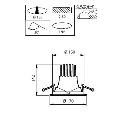 Der Ausschnitt einer Leuchte unterscheidet sich von den Abmessungen der Leuchte selbst und bezeichnet speziell die Größe der Öffnung in der Decke, die für die sichere Montage der Lichtquelle benötigt wird.