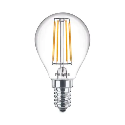 Die Philips Master Value LED Lustre E14 Kugel Fadenlampe Klar 3.4W 470lm - 927 Extra Warmweiß | Höchste Farbwiedergabe - Dimmbar - Ersatz für 40W ist eine effiziente E14 LED-Lampe mit Retrodesign und der perfekte Ersatz für Ihre konventionellen 40W Lampen mit E14. Zudem strahlt sie Licht in der Farbtemperatur 2700K - Extra Warmweiß aus und punktet durch eine lange Lebensdauer.